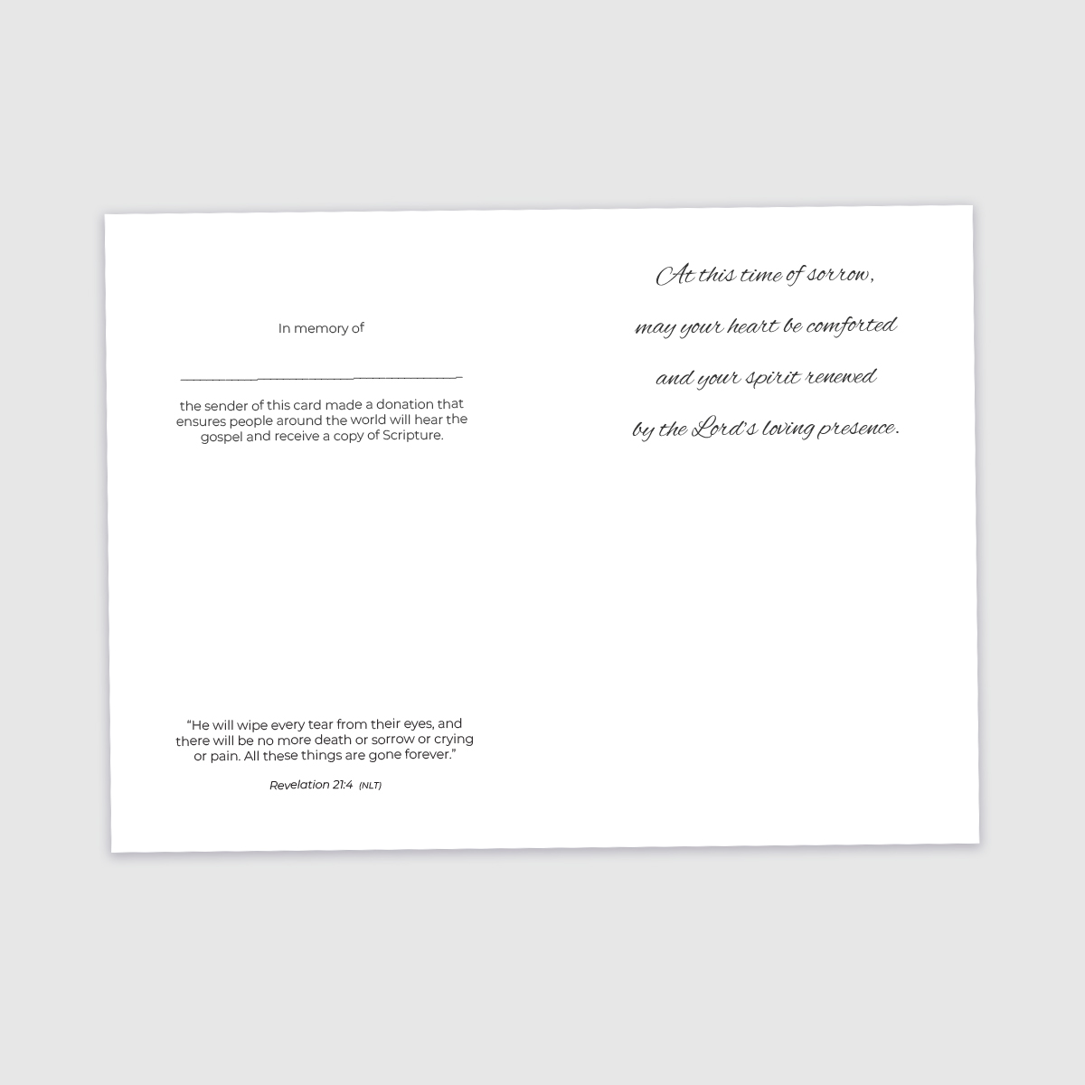 At this time of sorrow, may your heart be comforted and your spirit renewed by the Lord's loving presence.