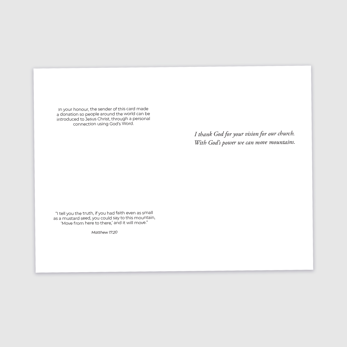 You can dedicate your gift to ShareWord Global by donating in memory of or in honour of a loved one. When you give, you’re also sharing the love of Christ by placing copies of God’s Word in the hands of people around the world.