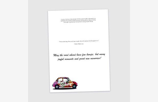 You can dedicate your gift to ShareWord Global by donating in memory of or in honour of a loved one. When you give, you’re also sharing the love of Christ by placing copies of God’s Word in the hands of people around the world.