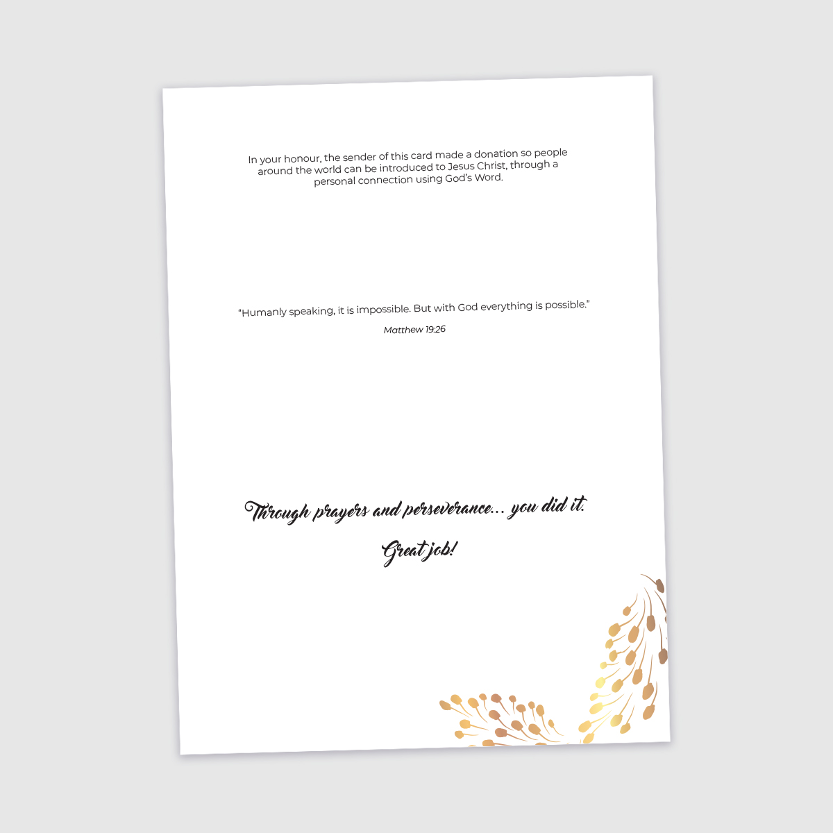 You can dedicate your gift to ShareWord Global by donating in memory of or in honour of a loved one. When you give, you’re also sharing the love of Christ by placing copies of God’s Word in the hands of people around the world.