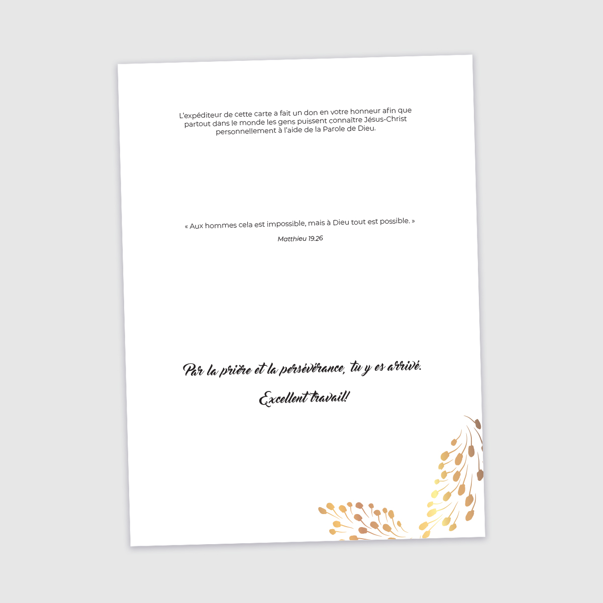 Par la prière et la persévérance, tu y es arrivé. Excellent travail!