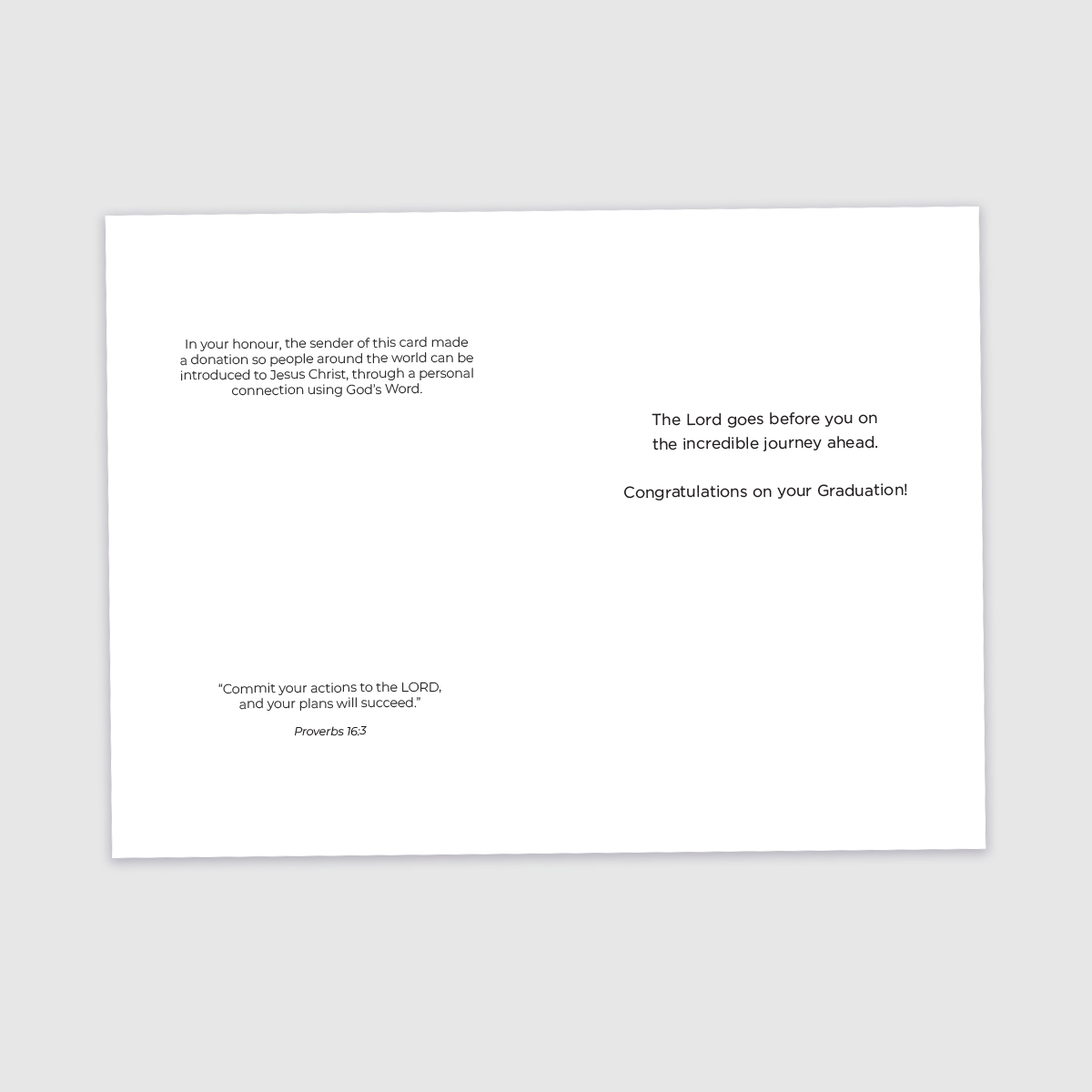 The Lord goes before you on the incredible journey ahead. Congratulations on your Graduation!