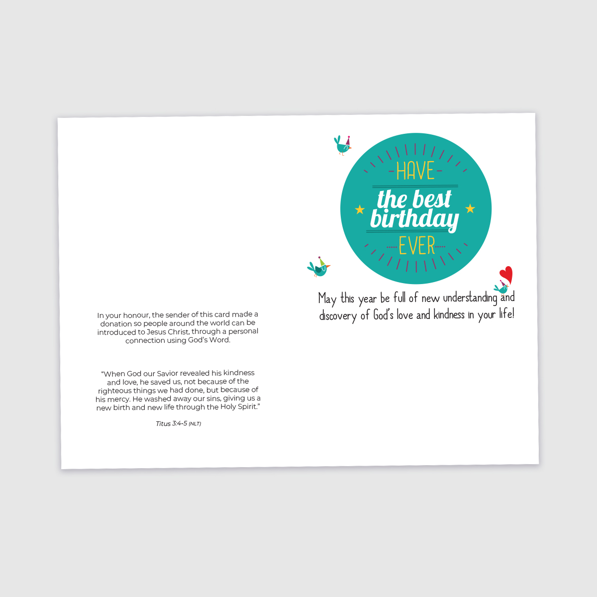 “When God our Savior revealed his kindness and love, he saved us, not because of the righteous things we had done, but because of his mercy. He washed away our sins, giving us a new birth and new life through the Holy Spirit.”