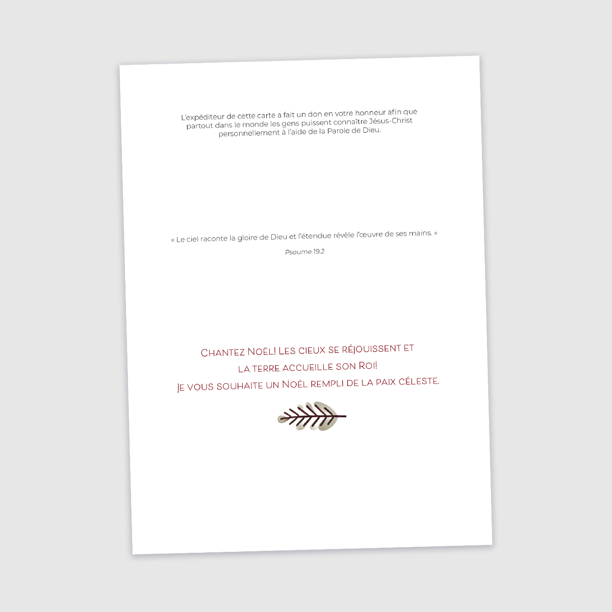Chantez Noël! Les cieux se réjouissent et la terre accueille son Roi! Je vous souhaite un Noël rempli de la paix céleste.